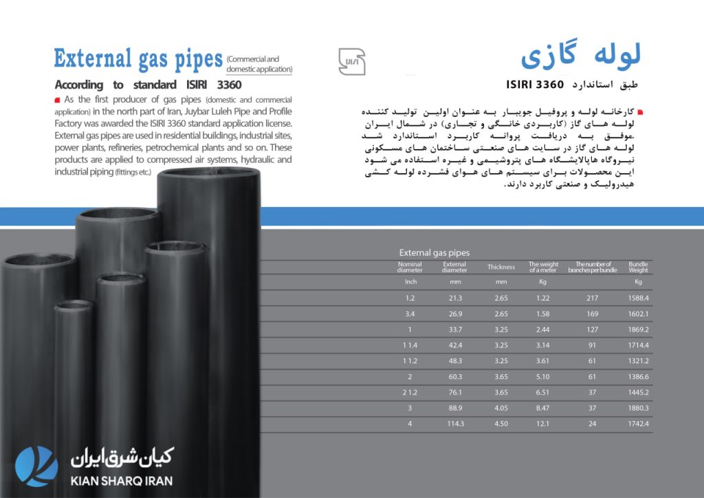 Among the ways used to transport gas, using tubular gas pipes is one of the popular solutions. This commodity is used in both industry and construction. There are different types of gas pipes based on the material, type of standard, and production method. As the first manufacturer of gas pipes (domestic and commercial applications) in the north of Iran, Kian Shargh Iran Factory received the license to use the ISIRI 3360 standard. Gas pipes are used in residential buildings, facilities, industrial, power plants, oil refineries, petrochemicals, etc.